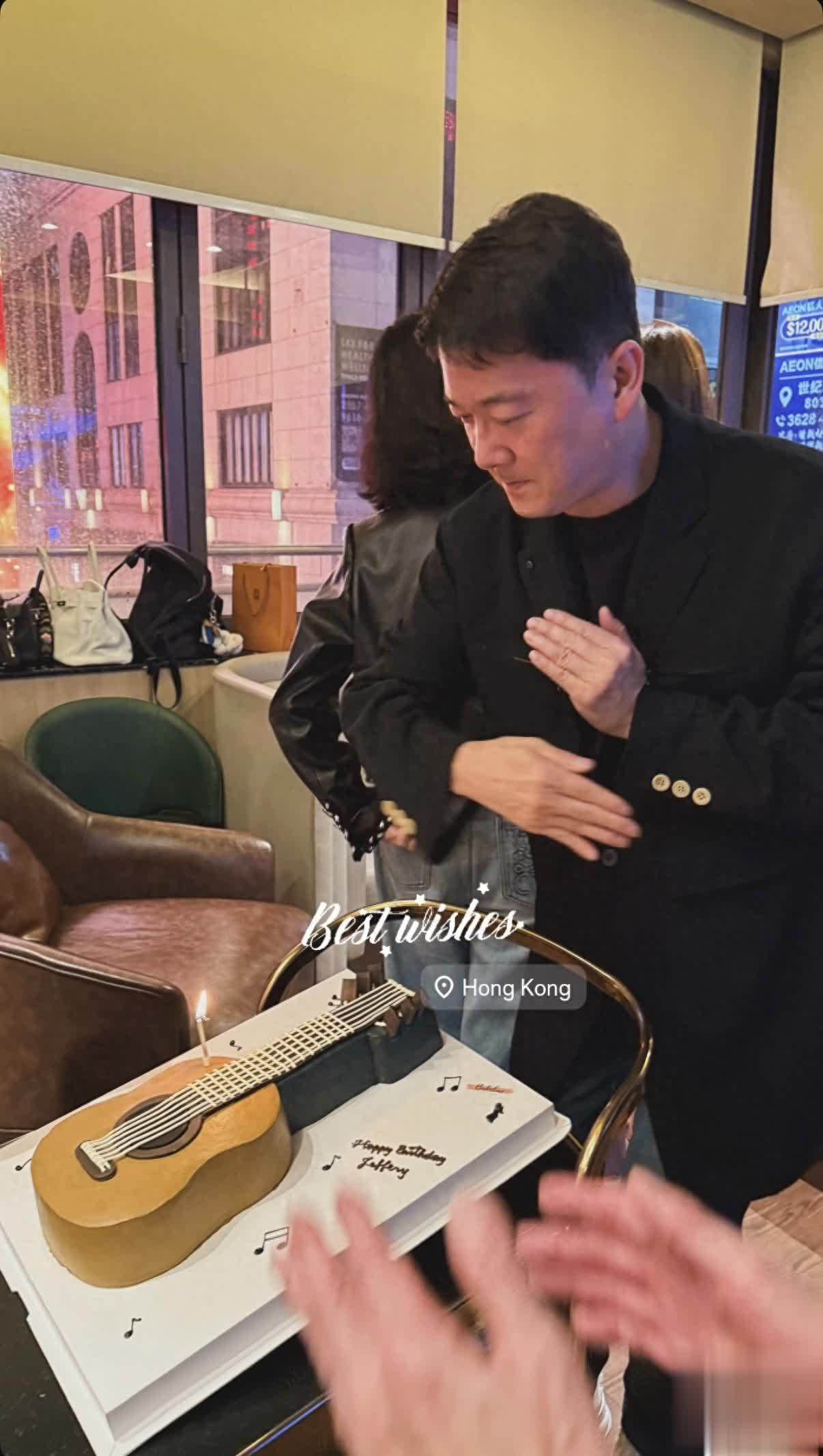 邱子杰的生日蛋糕是特别定制的,是一个小提琴造型的蛋糕。在蛋糕前,众人以各种组合合照,特别值得一提的是,只要有关之琳参与的合照,她几乎都在中间的位置,大概也是因为长得漂亮,又上镜,在中间特别养眼。关之琳当天打扮很休闲,牛仔裤搭配夹克外套,休闲归休闲,但是抢镜不假,成为了全场女生中最出众的一位,到底颜值出众,且气场还是强大的。